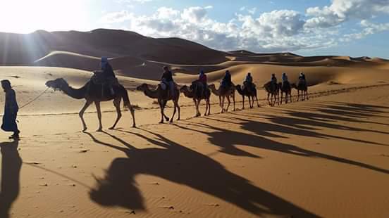 • Balade à dos de dromadaire dans les dunes de l'Erg Chebbi au coucher du soleil